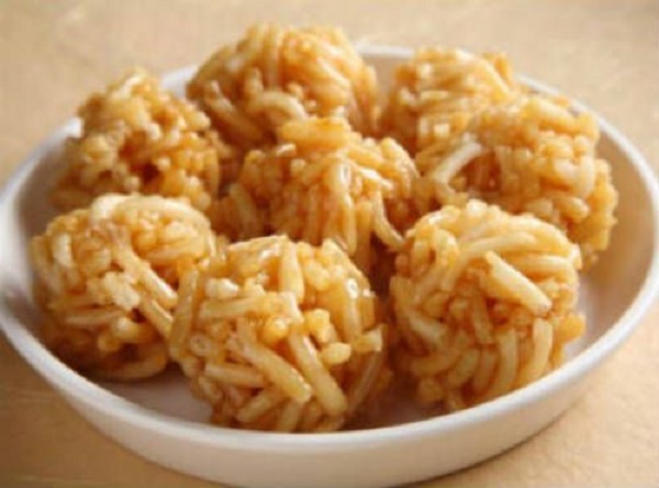 While technically not as sweet as the above, it does get a tangy taste because of Ginger being one of the ingredients. The ball formation, however, does make it easy for people to take a bite at and enjoy a delicious crunch. This dish is mostly popular in Southern India.