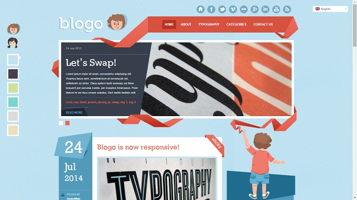 Blogo is super-cute. It has a kind of theme that will attract kids especially. There is a splash of color everywhere which is, of course, customizable. The posts also come with big handy date-tags along with a whole lot of other information about that particular article. The theme’s creators say that this aim will be perfect for kids party organizer, kindergarten teacher, toy shop owner, or simply any creative writer.
