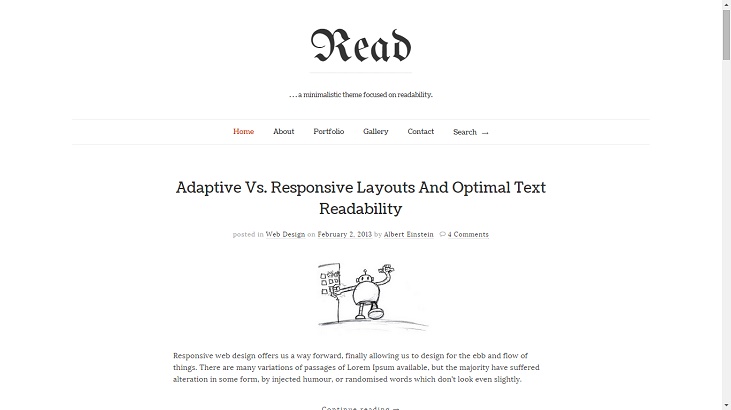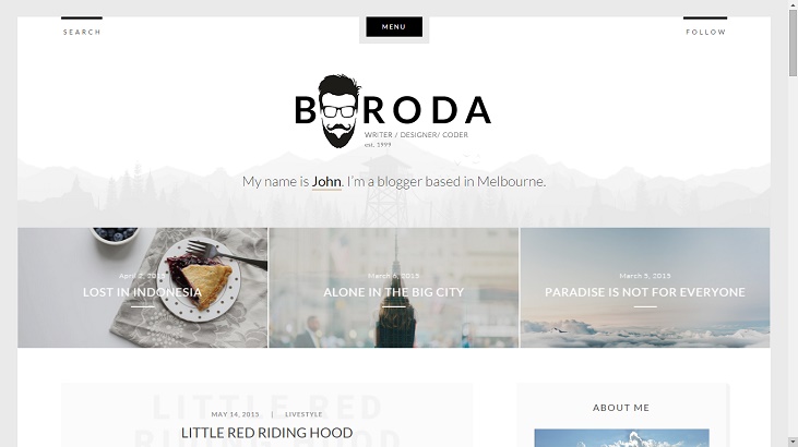 “Read” gets top marks for its specifically minimalistic design. If all you want to do is write your heart out in your new blog, this one offers the least distractions and is just the perfect showcase for your typography. The only catch may be the abundance of white space. But if you are one of the people with a taste for extreme minimalism, then this one is the perfect one for you. And due to the lack of any unnecessary bells and whistles, it is extremely responsive.