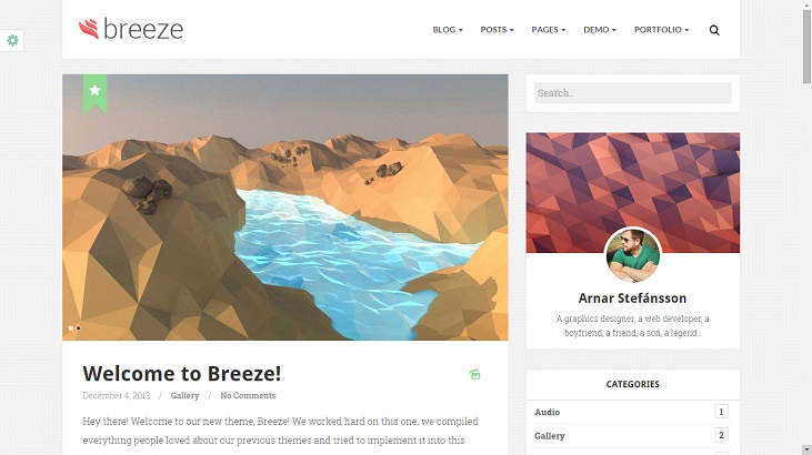 Minimalistic, responsive and aesthetically pleasing, Breeze is a perfect package. It has some superb visuals and great support for mobile devices as well. It also gives you the option to switch between multiple blog styles, from a regular blog to a three-column blog, and even a four-column.