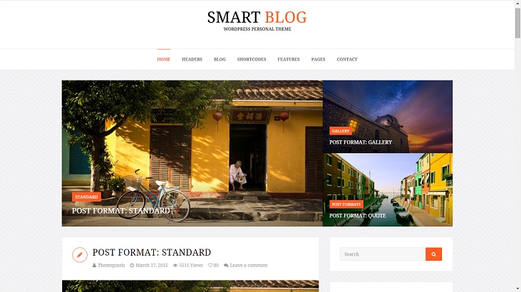 Aptly named “Smart Blog”, it is really a smartly-designed theme. It has big beautiful photo frames and big content spaces. It is a decent theme for perhaps any purpose and can be used for a wide variety of topics in blogging.