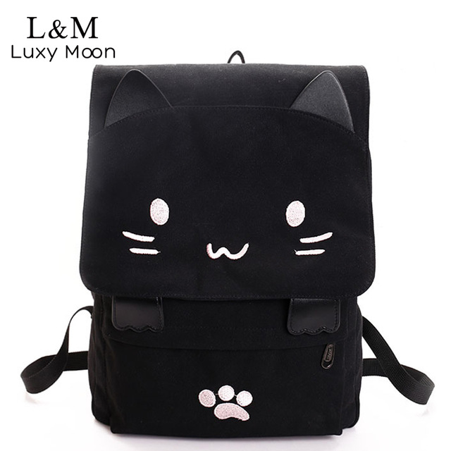 18. Cute Cat Canvas Backpack for the cat lovers who like to maintain a cute look with their accessories