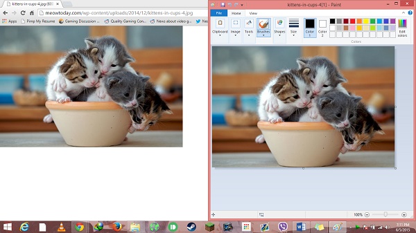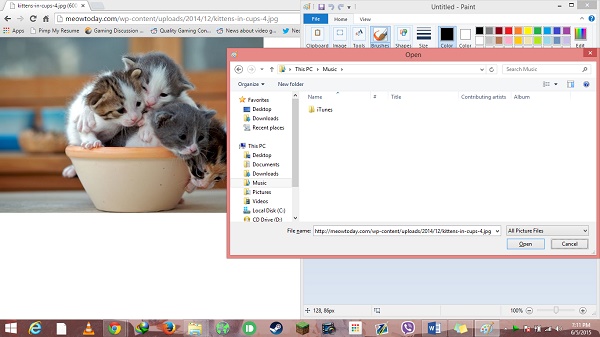 As a student, this is another issue that plagues me during assignment time. Luckily, I picked up this trick up in a CS class. All you have to do is copy paste the URL from the address bar with the help of CTRL + C. Now open up paint and Press CTRL + O and in the file name, simply enter the URL and click open.