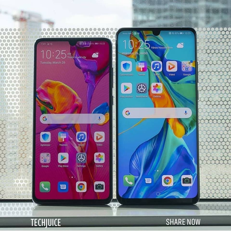 The P30 and P30 Pro have gigantic 6.1-inch and 6.47-inch displays, with both having OLED panels, 2340×1080 resolution and a 19.5:9 aspect ratio. Due to the smaller display size and same aspect ratio, the P30 model is sharper than the other. The P30 device features a flat display, while the P30 pro has a curved display.