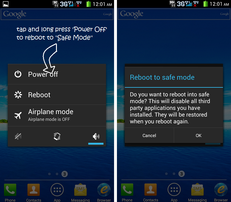 To do this, access the power-off options by pressing the power button, then press and hold Power Off. This gives you the option to restart in safe mode.