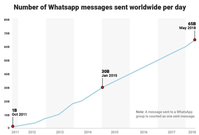 At that time, the number of messages being sent via the messaging platform was about a third of what it is today. When Facebook bought the WhatsApp, it had 465 million monthly active users and today surprisingly the most popular messaging service in the world connects more than 1.5 billion people. According to the report in Statista, more than 29 million messages were sent via WhatsApp in 60 seconds on average in 2017. As of May 2018, about 1.5 billion users are sending 65 billion messages via the WhatsApp mobile app and web client per day. That’s such a tremendous growth by any messaging app.