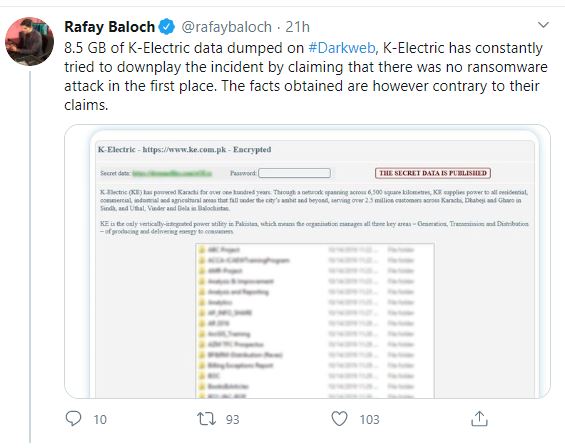 A concerning aspect of this saga is that K-Electric has hardly appeared to have taken it seriously, and has gone on to claim that the ransomware attack never happened. Information Security Researcher and cybersecurity expert Rafay Baloch debunked this claim by posting evidence of the data dumping on his Twitter page, adding that the company “has constantly tried to downplay the incident” and that “the facts obtained are however contrary to their claims.”