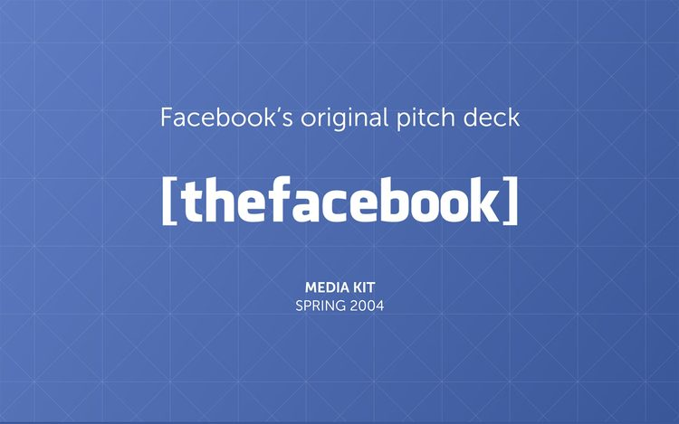Facebook does not have a public pitch deck but it does have a media kit they used back when it was known as ‘The Facebook’. Their first investor was Peter Thiel, from whom it raised $500,000. ‘The Facebook’ media kit includes the company’s value proposition, key metrics, and marketing tactics that were used to sell ads to potential clients.