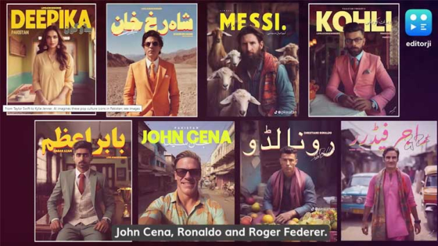 The collection features celebrities from various industries, including film, sports, music, and television. From Shah Rukh Khan and Deepika Padukone to Virat Kohli and Kim Kardashian, each portrait portrays the celebrity in an unfamiliar yet captivating light. The use of traditional Pakistani outfits adds an element of elegance and uniqueness to the images.
