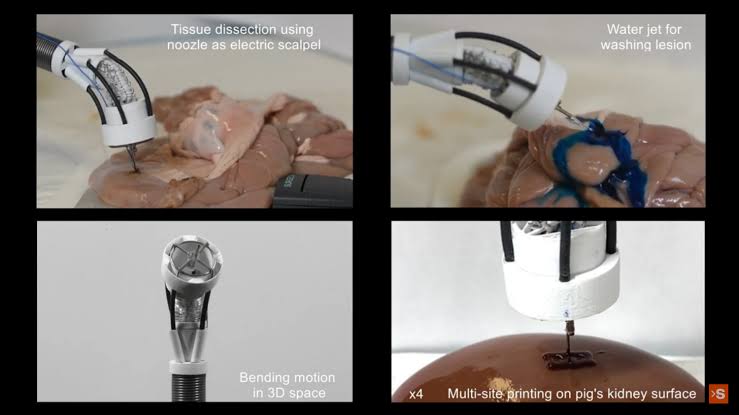 Moreover, the bioprinter’s snake-like flexible body can inserted inside the body. Through anus or mouth and a surgeon can control its movement with hand gestures.