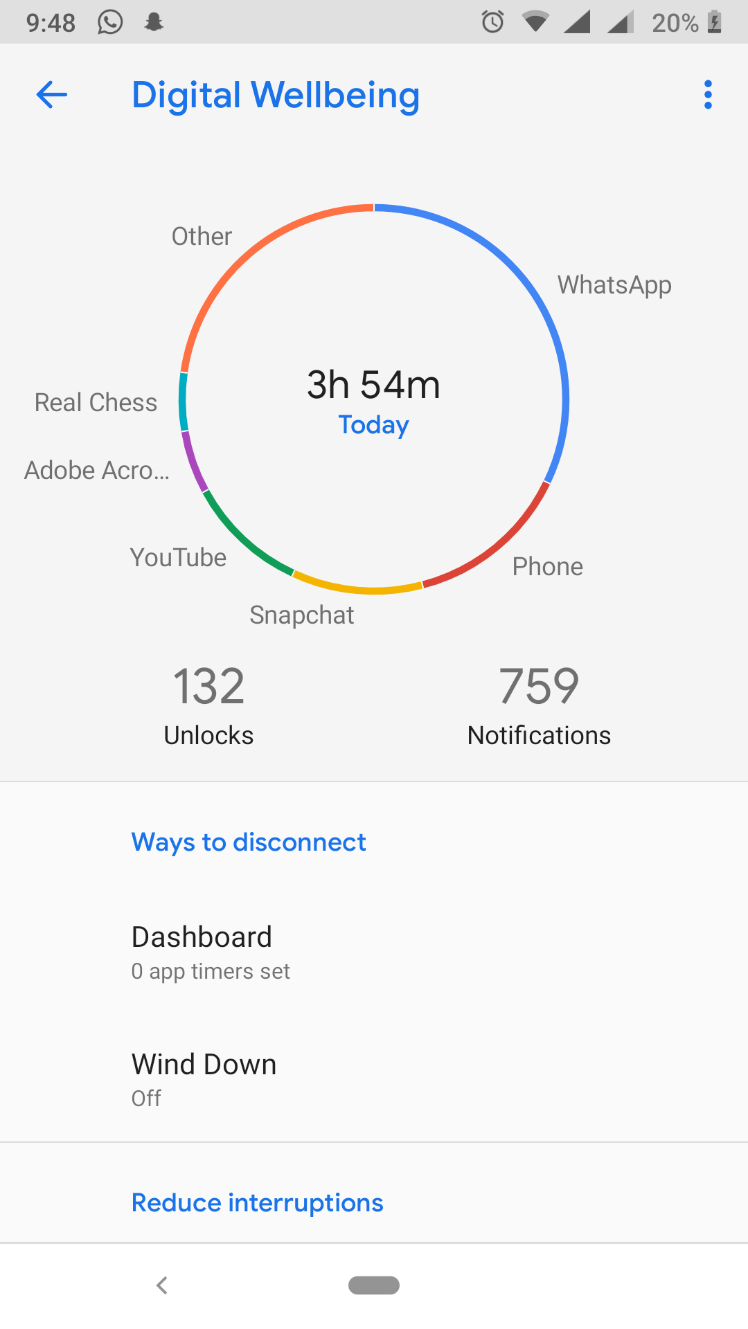 Given below are a set of screenshots from the Digital Wellbeing feature in my Nokia 6.1. As you can see, majorly my time on my phone is utilized on social media applications like WhatsApp: