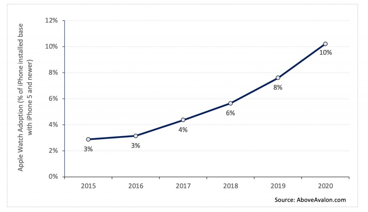 “At 100 million users, the Apple Watch is Apple’s fourth-largest product installed base behind the iPhone, iPad, and Mac. At the current sales trajectory, the Apple Watch installed base will surpass the Mac installed base in 2022. Surpassing the iPad installed base will take longer and likely be measured in a number of years based on the current sales trajectory.”