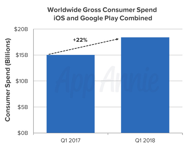 The year 2018 started with the strongest quarter, the app economy has ever seen, shattering the previous records set in Q4 2017 for both consumers spend on apps and downloads. The global app downloads and spending keep hitting new highs. The performance of these stores demonstrates that the app markets are maturing, consumers at a large scale. They are increasingly willing to pay for the growing benefits as well that they receive from apps.