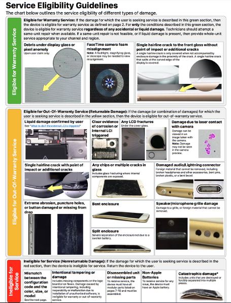 The leaked document states, how Apple determines and instructs its technicians to inspect the phone, whether the product/smartphone is eligible for an in-warranty repair, or an out-of-warranty repair or if Apple has to dispatch a new phone entirely— meaning the phone is beyond repair.