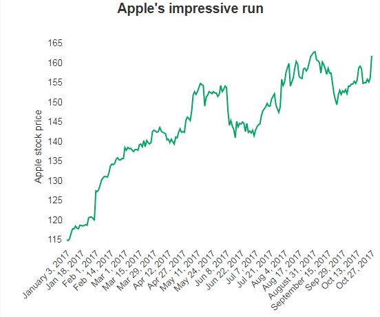 Keeping all in mind, Apple is expecting larger revenue in its last fiscal quarter. This could make Wall Street review its models as they are also expecting an increase in Apple’s stock price. A 40% increase has already been demonstrated by Apple in the year 2017, as you can view in this graph.