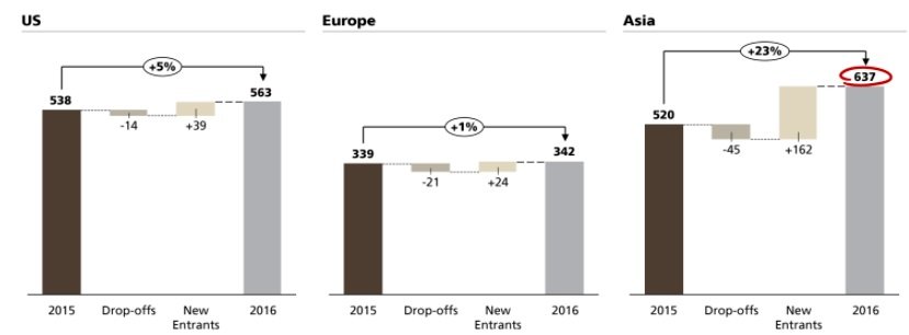 The total number of billionaires in the US are 563 and Asia now has a lot more billionaires than the US. Europe comes third with 342 billionaires. Asia is quickly adding more number of billionaires which lead to its first place around the world. Asia added 162 new billionaires last year leading the billionaire count to 637. This is 23% growth in numbers. US added only 39 new billionaires. And the increase in Europe’s billionaires remained 1%.