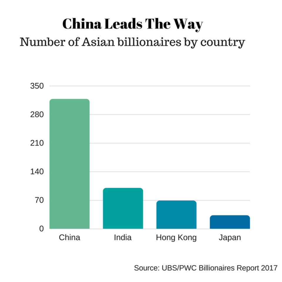 For the first time in history, Asia becomes home to the most number of billionaires outnumbering the United States. Asia now has 637 billionaires with China leading the pack. It is also expected that Asia will overtake the world’s largest billionaire market in terms of total billionaire wealth.