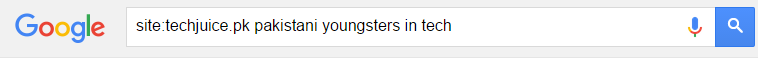Google can be narrowed down to search specific sites too. If you want to find some content on a specific site(TechJuice for example) and you don’t like their search feature, simply write “site:techjuice.pk” followed by your search term. Suppose you want to search for “Pakistani youngsters in tech” on TechJuice.pk, then it should look something like this,