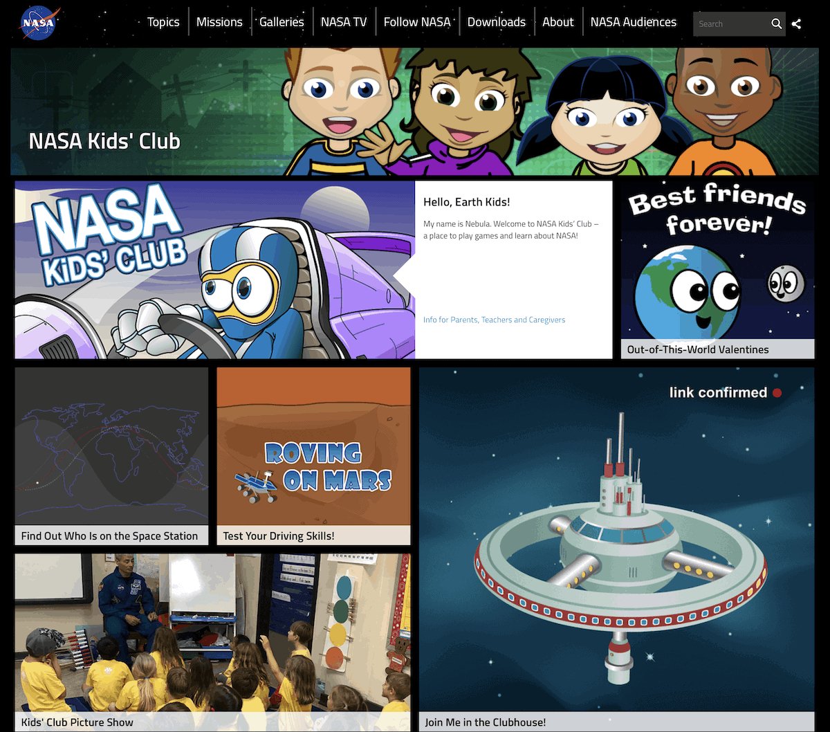 If your child is interested in space, go to the NASA Kids’ Club website. It’s jam-packed with data about space missions, science, and technology. This area of the website has STEM-related games for students in kindergarten through fourth grade (science, technology, engineering and mathematics). There are other parts of NASA’s main website for older children up to the 12th grade.