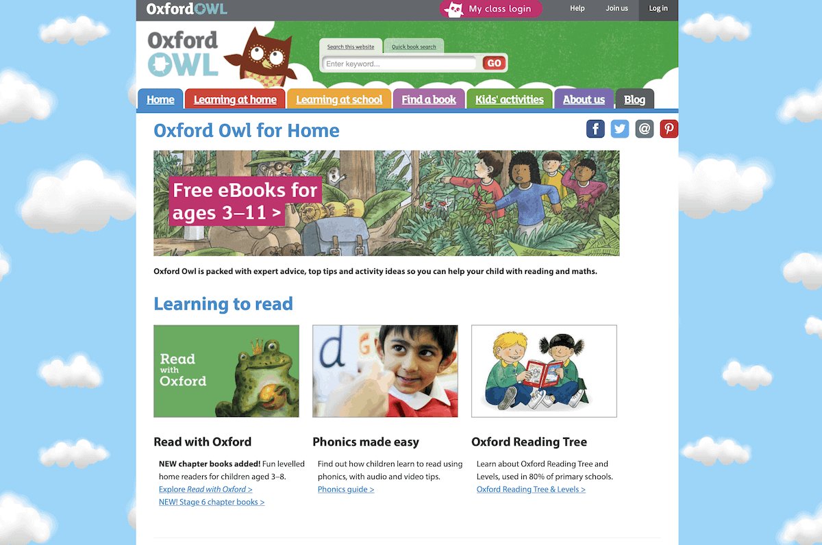 Oxford Owl is an award-winning website produced by Oxford University Press to help youngsters learn reading and math. It includes activities, recommended reading lists, and free e-books for children aged 3 to 11. It is based on the UK curriculum. It provides expert guidance, videos, and recommendations for parents to help their children with reading and arithmetic.