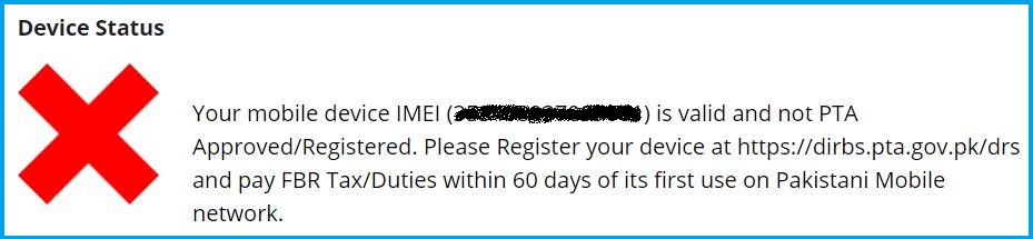 To avoid any inconvenience of buying a phone with reprogrammed IMEI, the public is advised to check IMEI status of a device prior to buying/obtaining by sending each 15 digit IMEI via SMS to 8484 or visiting this link: https://dirbs.pta.gov.pk.
