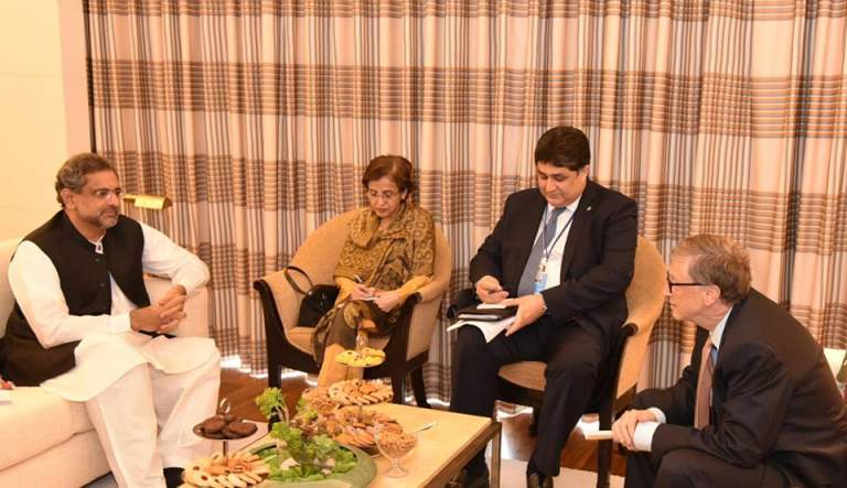 Microsoft’s founder and famous philanthropist, Bill Gates met with Pakistan’s premier, Shahid Khaqan Abbasi in New York this Thursday. Acknowledging the efforts made by Pakistani government to eradicate Polio from its land, the world’s richest person then assured Shahid Khaqan Abbasi that every possible assistance would be lent from their side too.