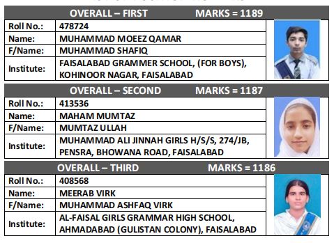 FAISALABAD: The Board of Intermediate and Secondary Education (BISE) Faisalabad has officially revealed the names of the position holders for the Secondary School Certificate (Matric) First Annual Examination 2025, ahead of its complete results announcement.