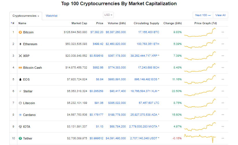 It was observed that yesterday each of the top 100 coins by market cap was shown in green color.