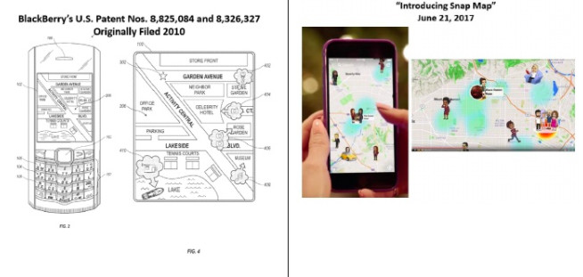 Moving on, according to BlackBerry, the idea of Snap Map – an interactive map showing you which other devices are in the area, and a color gradient to show information about the level and density of documenting activity – was also first introduced by the firm itself through a patent.
