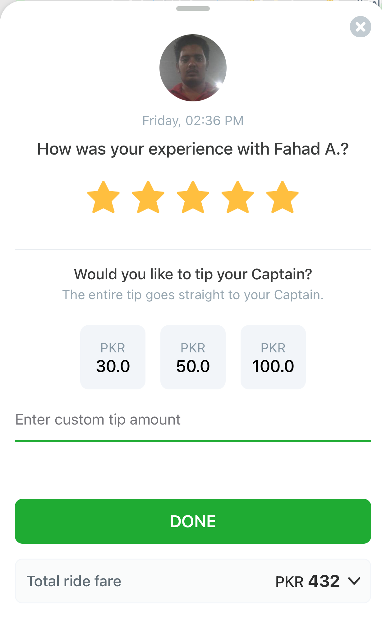 At the end of every ride, customers get to rate the Captain. That rating translates into Captains’ performance and ultimately impacts their earning. It is common etiquette to rate the Captain, but always remember that the rating is solely for Captain-related factors, including behaviour, driving technique, personal hygiene and cleanliness of the vehicle and not pricing related factors. That being said, one should avoid being biased or dishonest while rating the Captain. The rating system consists of 5 stars, for a job well done, you can give a perfect rating or adjust it according to the customer experience.