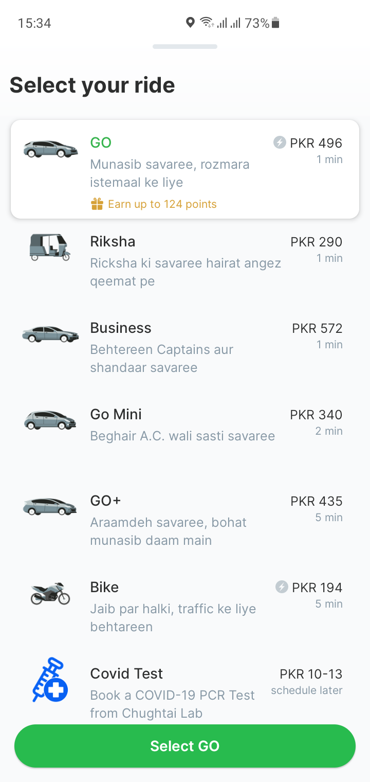 - Payment options: If the payment is by card, the amount will automatically be deducted from your account. If it’s cash, make sure to collect the change or ask the Captain to top-up the wallet. Gold Customers can top-up up to PKR 400 and non-gold Customers can top-up up to PKR 100.