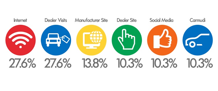 Car dealers are realizing the digital marketplace as a new way to touch potential consumers. 25% of car dealers reported using websites in order to reach out to potential buyers while 16.7% are using Facebook. They are not yet using Twitter or Instagram to expand their reach, though the shift towards online is obvious. However, 41.7% car dealers are still content with putting time, money and focus on Newspaper advertisements.