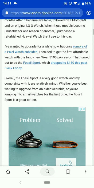Chrome for mobile is taking multi-tasking to a new level with Sneak Peek which allows you to open links within a website. As of now, when you tap and hold a link, you either have the option of opening it in a new tab or in incognito mode. Chrome Canary and Chrome Dev have received the Sneak Peek functionality in which the link is loaded and it initially covers a quarter of the page but you can increase the layout size and browse it completely without navigating away from the main link in the Chrome browser.