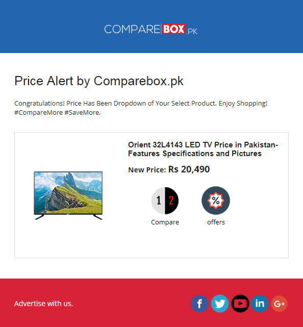 Comparebox.pk also allows you to set price alert for your desired product. You can enter your mobile number or email and Comparebox.pk will notify you when the price of your desired product changes, This is a great way to keep eyes on dropping prices of mobile phones or to keep an eye on any upcoming sales on different products.
