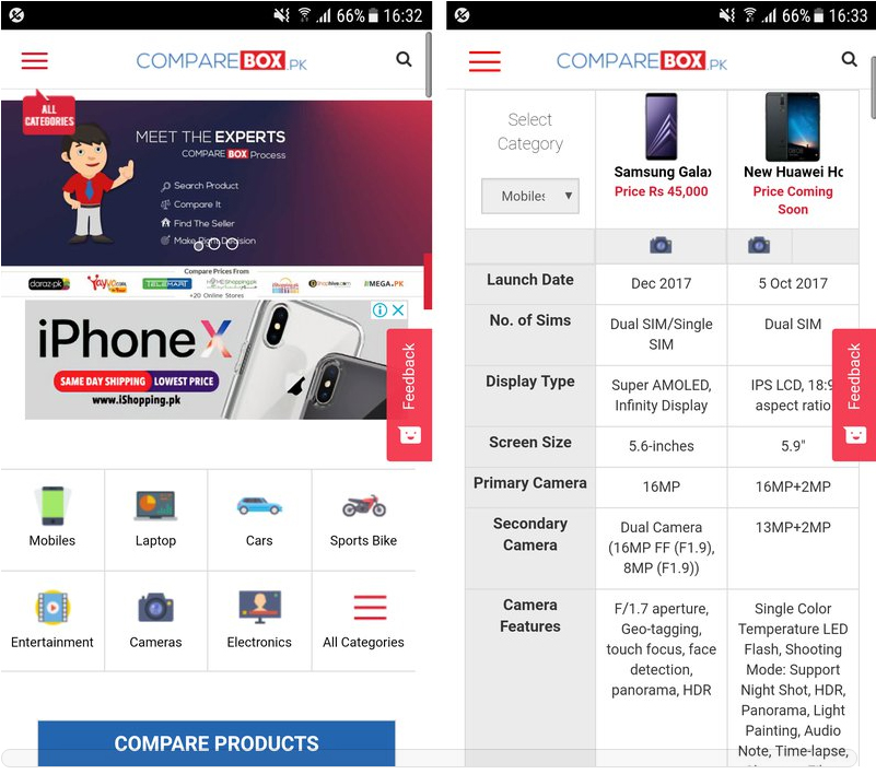 Let’s take a look at what CompareBox.pk has to offer its visitors: