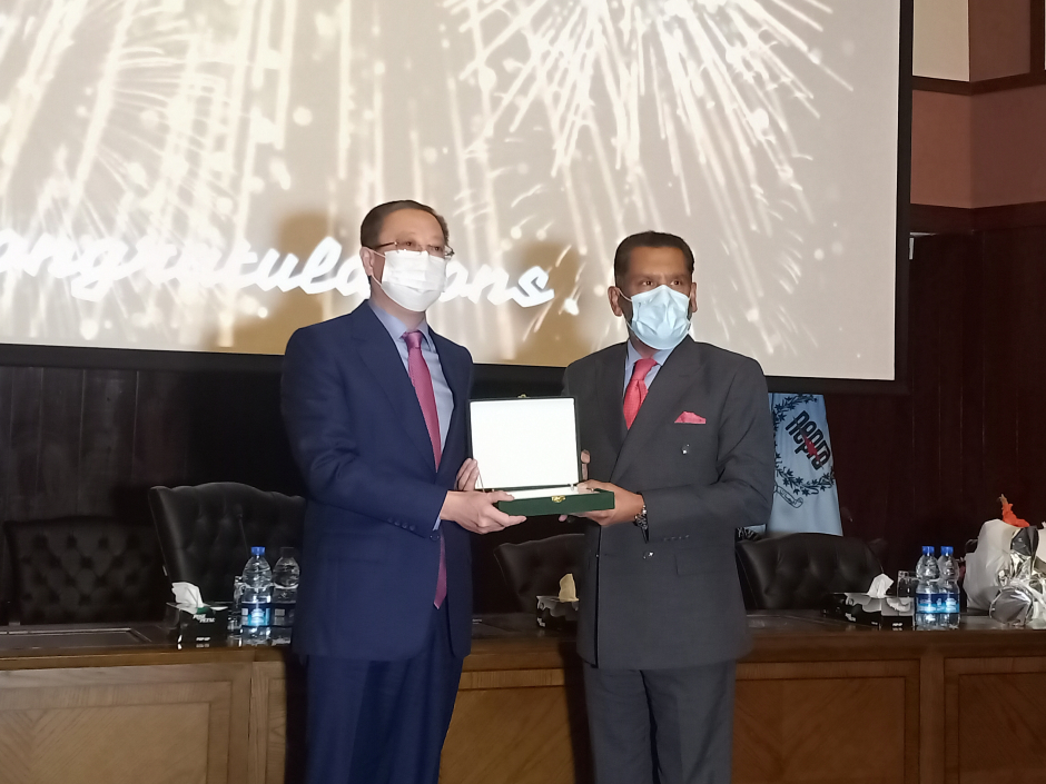 Mr. Tauseef H. Farooqi, Chairman NEPRA and Chief Guest of the NEPRA CSR Awards 2022 presented the plaque of appreciation to Mr. Ren Lihui, CEO China Power Hub Generation Company (Pvt.) Ltd.