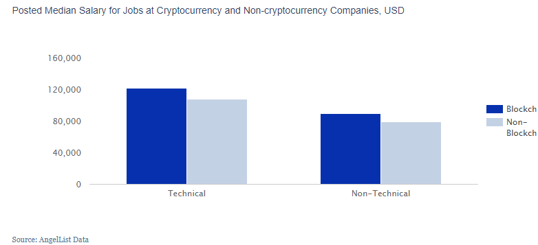 “Cryptocurrency companies are hiring in record numbers and looking for both technical and non-technical talent. On AngelList alone, companies are recruiting for 2500+ open technical roles and 1000+ non-technical roles.”