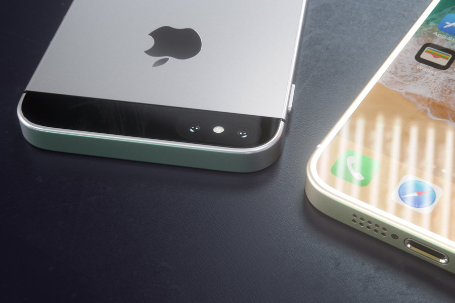Curved.de designers have produced mock-ups of an iPhone SE that has the same form of the existing iPhone SE, but lacks bezels and, as a result, has a larger 4.7-inch display. Moreover, it also has an OLED display, like the iPhone X, and a TrueDepth front-facing camera. While the iPhone X’s small trapezoidal bezel at the top only comes in the color black, the reimagined version of the iPhone SE’s top bezel has multiple colors. It also has a dual rear camera and more rounded edges.