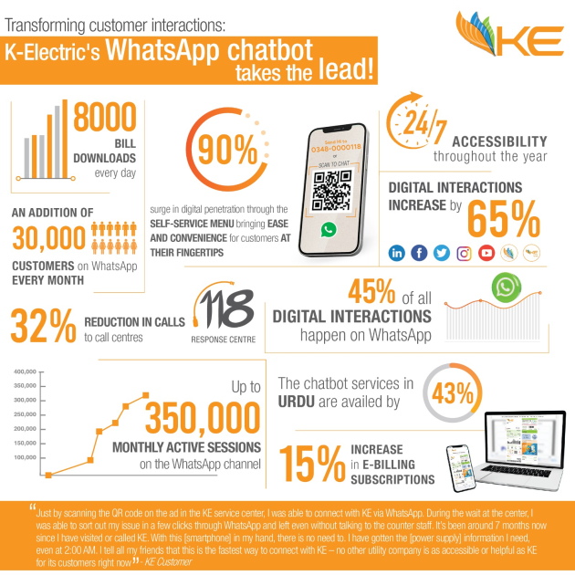 K-Electric-pioneers in establishing a swift and hassle-free communication channel with its customers, the sole vertical power provider has partnered with Infobip and launched bilingual services through its WhatsApp chatbot. Using this service along with checking my official emails, during office hours has made my life peaceful. Being a single woman, living independently with a full-time job I hardly get time to visit customer care centers or banks for various financial or utility needs.