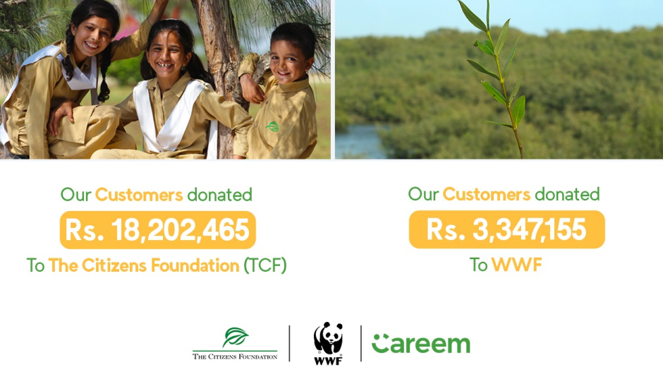 The donation amount was revealed in a unique virtual ceremony where notables from both charities and Careem were present where out of the cumulative amount, TCF and WWF received PKR 18.2 million and PKR 3.3 million respectively over a period of two years.