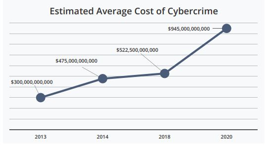 The study reveals that by their estimates, the world faced a monetary loss of approximately $945 billion due to cybercrime and spent approximately $145 billion on cybersecurity. In comparison, the cost of cybercrime was estimated to be around $600 billion in 2018. That is an increase of around 50% since 2018.