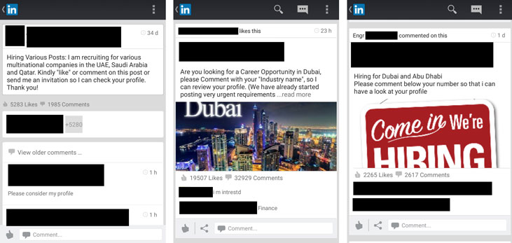 Now take a look at the number of responses these posts have gotten: over 27,000 likes, and 37,500+ comments, between just three posts! One might wonder if there is more to this than what’s apparent. Unless securing a job in Dubai has become as easy as Liking a post on LinkedIn, there definitely is more to this story.