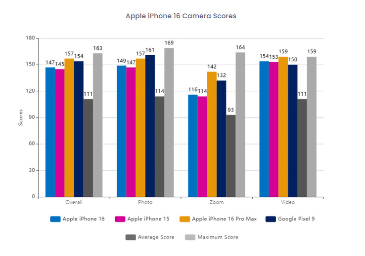 DxOMark has published its camera test results for the iPhone 16. Apple’s flagship device outperformed the Galaxy S24 Ultra but fell short of the Google Pixel 9, achieving an overall score of 147.