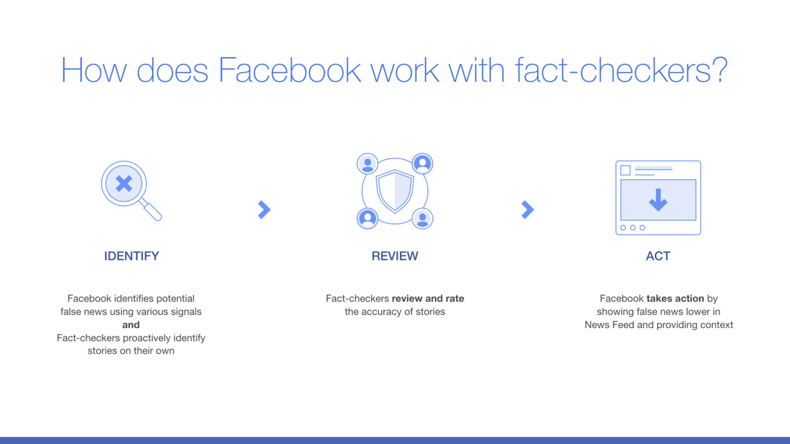 “When fact-checkers rate a story as false, we significantly reduce its distribution in News Feed — dropping future views on average by more than 80%. Pages and domains that repeatedly share false news will also see their distribution reduced and their ability to monetize and advertise removed.”