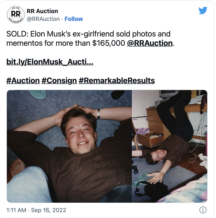 Elon Musk’s College Girlfriend Auctions Photos and Mementos for over $165,000
