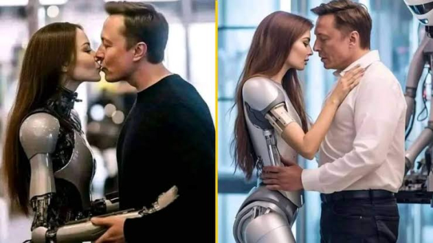 Bizarre photos of Elon Musk Kissing a creepy robot have been leaked out and left the internet baffled