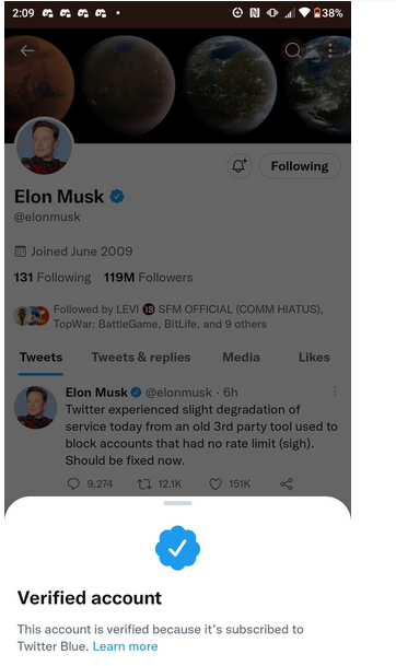 However, some people who responded later were able to see the blue verification badge that simply says ‘This account is verified because it is subscribed to Twitter Blue’ proving that he is paying for it.