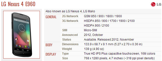 On the users’ side, only a compatible smartphone which supports the 3G/4G frequency spectrum will be required in order to enjoy the next-generation mobile services. Most of the current smartphones support a variety of spectrums. If you want to check if your smartphone supports the spectrums that will be used by telecom operators in Pakistan (2100 MHz for 3G and 1800 MHz for 4G), head over to GSMArena.com and search for your smartphone model. In the specifications list, you will see the supported spectrums under the heading of “General”. Nexus 4, for example, supports 2100 MHz spectrum for 3G, but it doesn’t have a support for 4G.