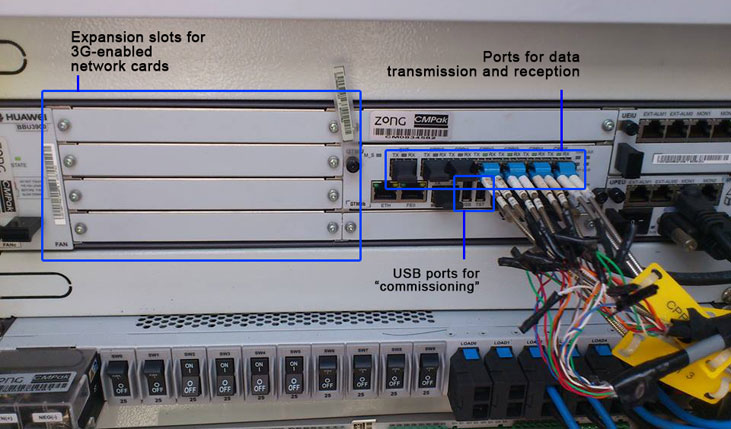 A Huawei-made BTS unit currently in use at Zong’s sites in Karachi. Major portions have been labelled.