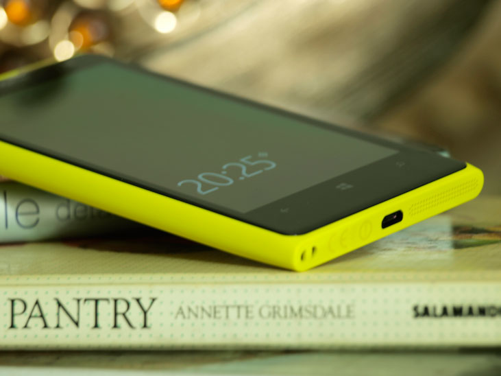 The body of the phone is pretty much seamless, and the Gorilla Glass 3 screen has nice smooth edges which enhance the overall look of the phone. There are capacitive softkeys at the front just like several other Lumia phones. The only physical buttons are on the right side, including the volume up/down button, power/lock button, and a dedicated button for the camera. The phone also features a micro-USB charging port, a 3.5mm standard audio jack, and a noise cancellation mic as well (works best both for calls and when shooting video). The only problem some people might have with the Lumia 1020’s design is the ‘bump’ of the camera. There’s a clear bulge on the back, which makes it somewhat difficult to place the phone on a flat surface (the only way is to put it face-down). Even in your pocket, the phone can feel slightly cumbersome. Despite of that, holding the phone is a pleasure, as the size to weight ratio feels just fine. It is definitely a bit heavier than most other smartphones, but that isn’t a factor that would bother the most of us.